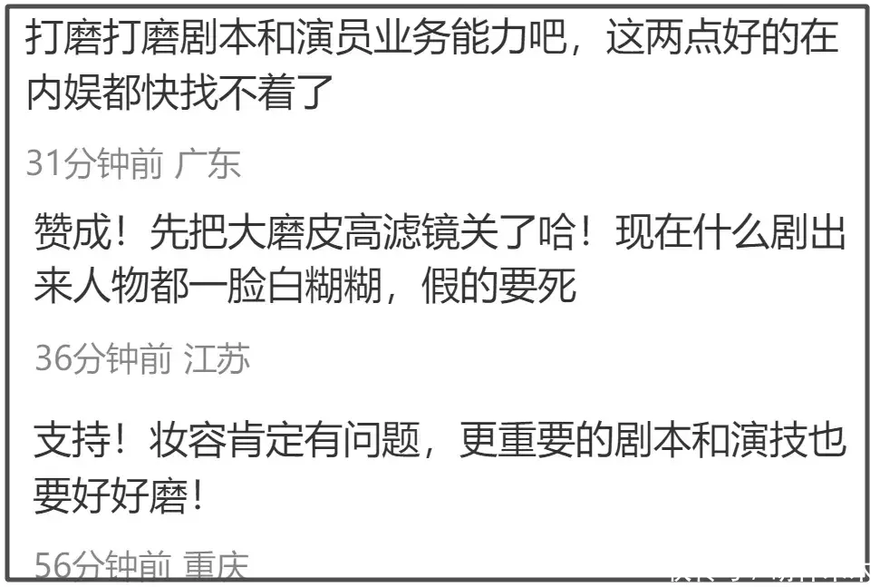 不管是演员选择、服化道等,都是为剧情服务,内容不好看也吸引不了观众,如果故事都讲不好,演员多帅多美也带动不了口碑。当然也不是说不许化妆,而是不要“过度”。